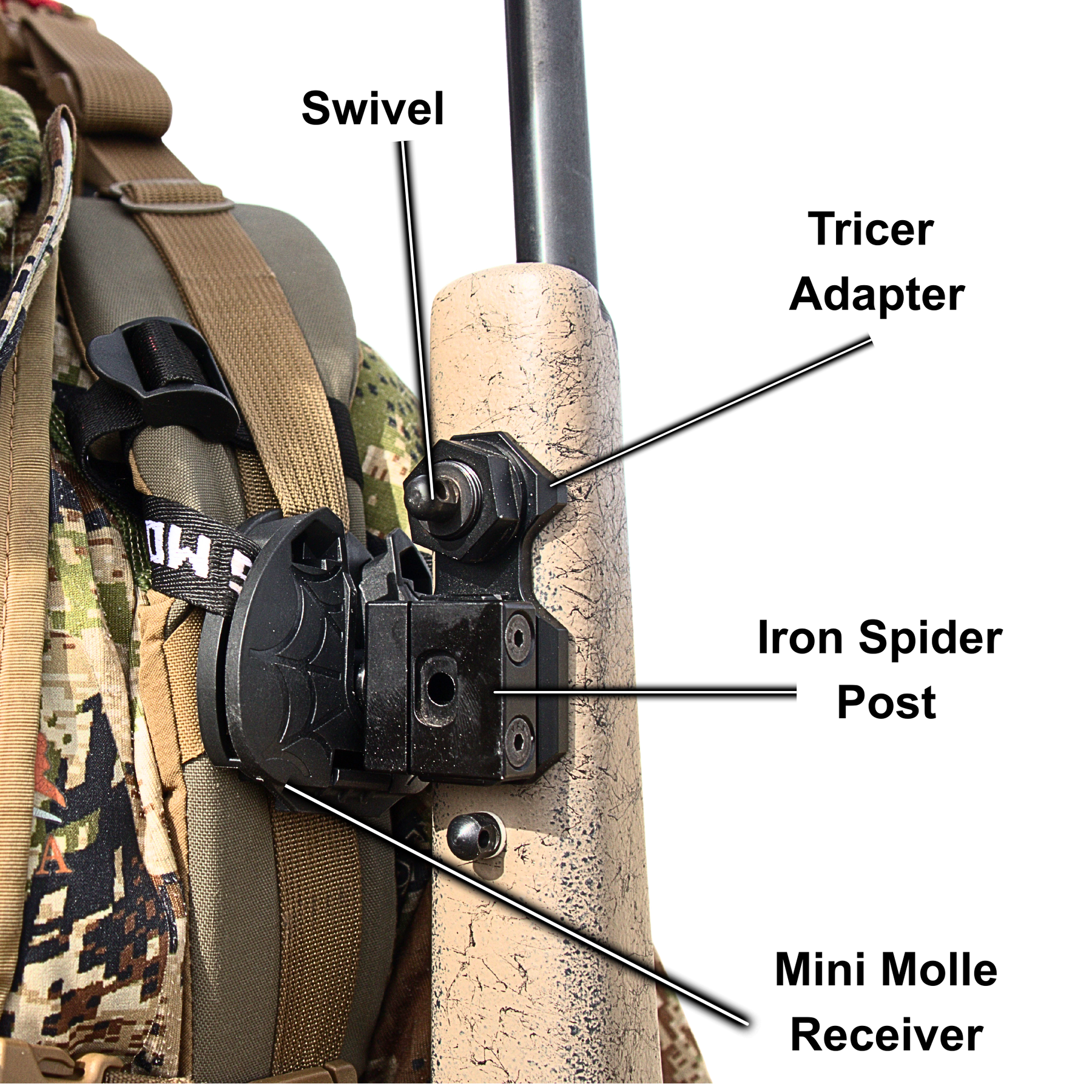 The Bow Spider RMEF Edition is unique, with the RMEF edition post and blue belt you will stand out. The universal bow packing system fits any compound bow and affixes to any pack, hip, tree, wall, or car for easy storage and access.